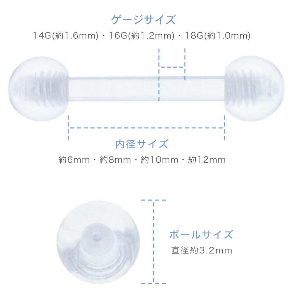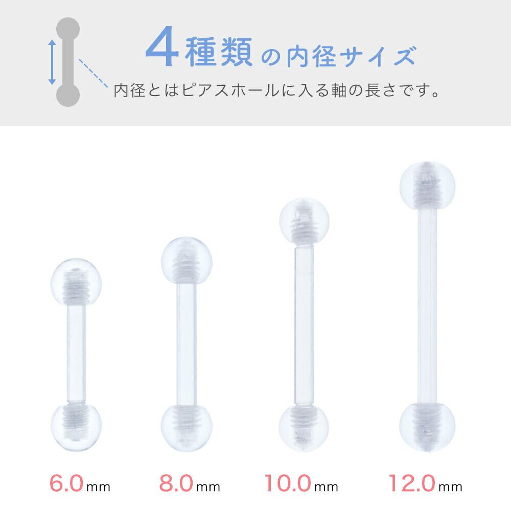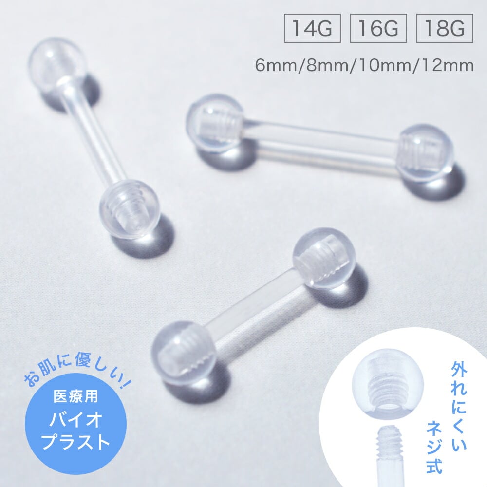 バイオプラスト ストレートバーベル ボール 片耳用 1個売り 透明 マット 耳たぶ 軟骨 ヘリックス ボディピアス 14G 16G 18G ネジ式 レディース メンズ クリア 金属アレルギー対応 目立たない つけっぱなし シークレット 職場 学校