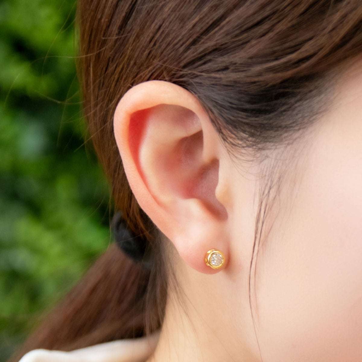 顔周りに繊細な輝きを添えるワンストーンピアスです。