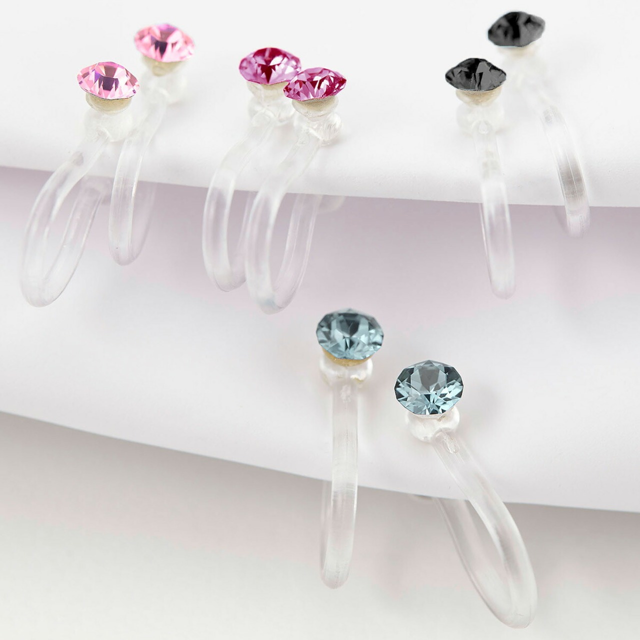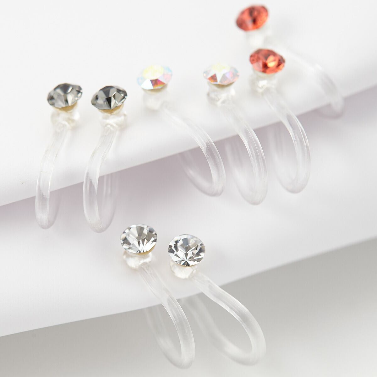 イヤリング レディース ノンホールピアス 直径3ミリ ラインストーン 樹脂 ノンホール オメガ ワンタッチ 日本製 国産 金属アレルギー かわいい 小さめ 小ぶり シンプル 金属アレルギー対応 安心 痛くなりにくい お肌に優しい 12カラー クリア プレゼント ラッピング対応 秋冬