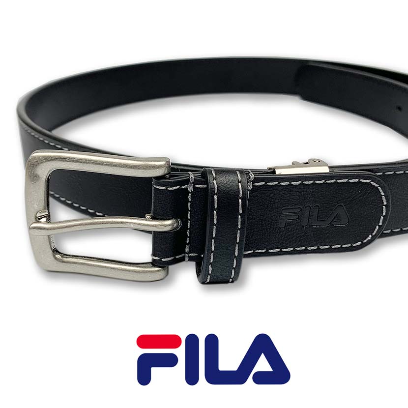 ベルト メンズ FILA カジュアル 幅2.8cm タイト ステッチデザイン 合皮 ロゴ型押し 黒 ブラック 茶色 ブラウン 紺色 ネイビー