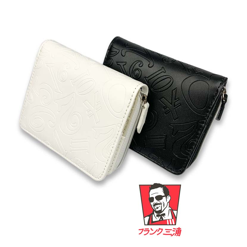 二つ折り財布 メンズ 春夏秋冬 ラウンドファスナー 小銭入れ コンパクト 合皮 Frank Miura ロゴ型押し 白
