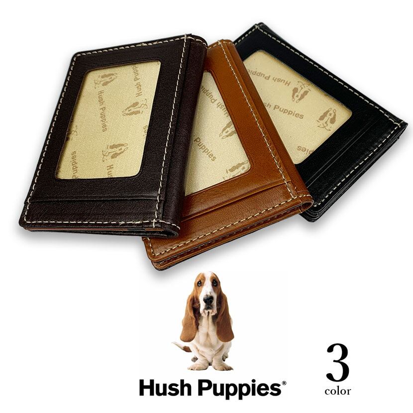 Hush Puppies ハッシュパピー 定期入れ カードケース パスケース 男性用 リアルレザー バイカラー シンプル 定番