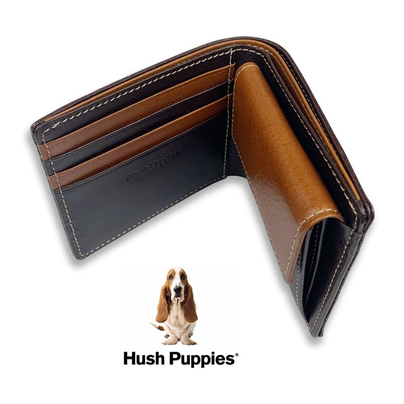 Hush Puppies 二つ折り財布 ショートウォレット 男性用 ハッシュパピー リアルレザー バイカラー 小銭入れ付き シック スタイリッシュ