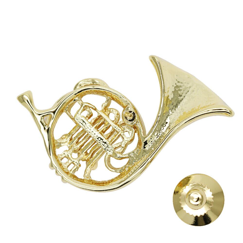 ブローチ レディース ホルン ピンバッチ ラインストーン キラキラ 楽器 演奏会 音楽 カジュアル ワンポイント ストール留め ジャケット 襟元 個性的 ユニーク シルバー ゴールド プレゼント ギフト メール便 送料無料 春夏秋冬 大人気
