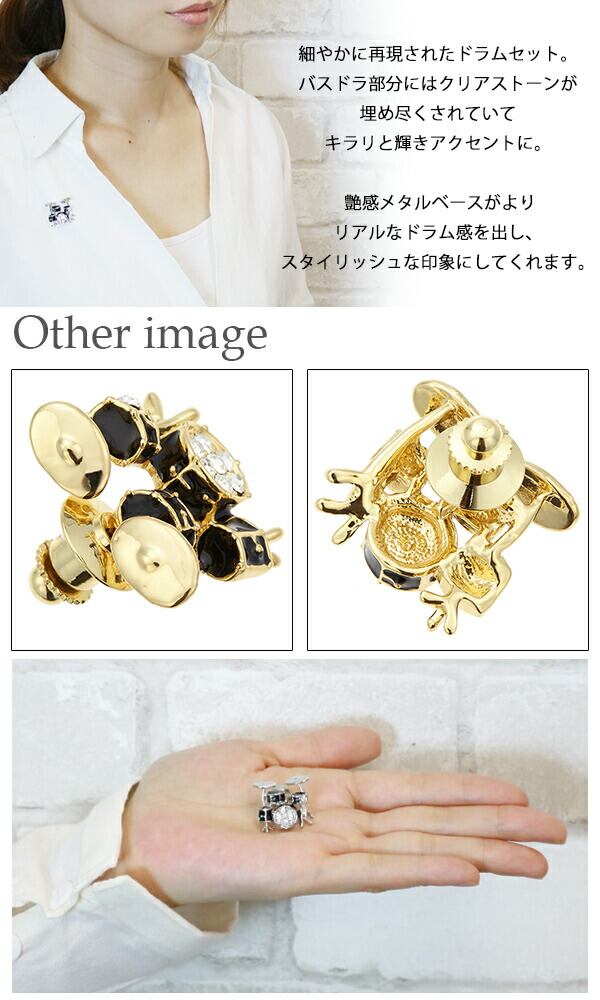 ブローチ ドラムセットタックピン ニッケルフリー 低金属アレルギー ブラック 黒 楽器 音楽 演奏会 発表会 太鼓 レディース メンズ ユニセックス プレゼント用にも メール便 送料無料 春夏秋冬 大人気 あす楽