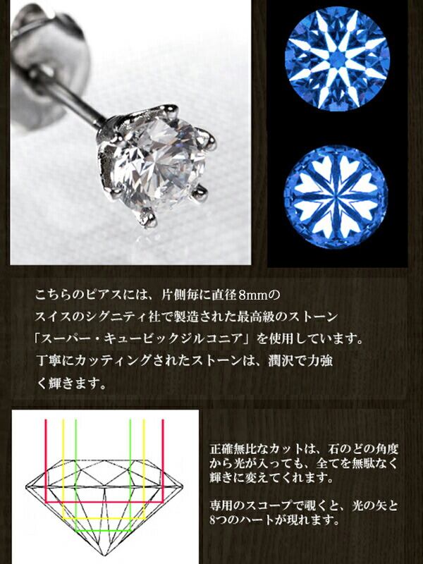 ピアス レディース メンズ 8mmスーパーキュービックジルコニアの1石 チタン製ポスト 金属アレルギー対応 シルバー 大きめ 大人上品 綺麗系 プレゼント用にも メール便送料無料 プレゼント 春夏秋冬 大人気 あす楽