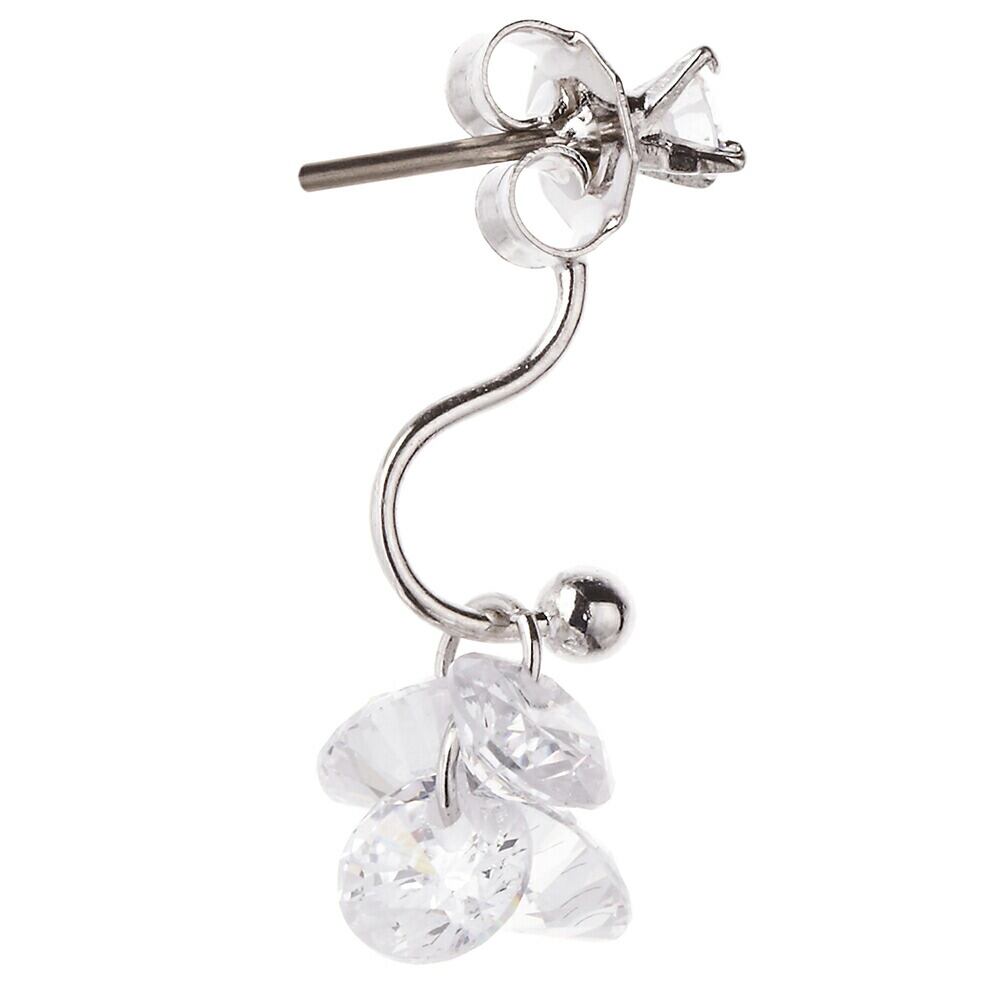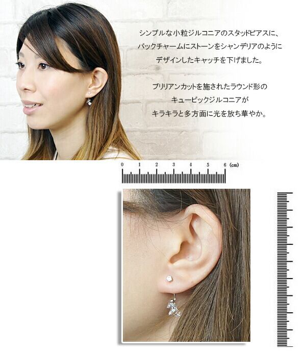 スタッドピアス レディース チタン製ポスト バックチャームフリンジ 金属アレルギー対応 キュービックジルコニア ぶどうフリンジ 1粒シンプルスタッド キャッチフリンジ 耳たぶ下 メール便 送料無料 春夏秋冬 大人気 あす楽