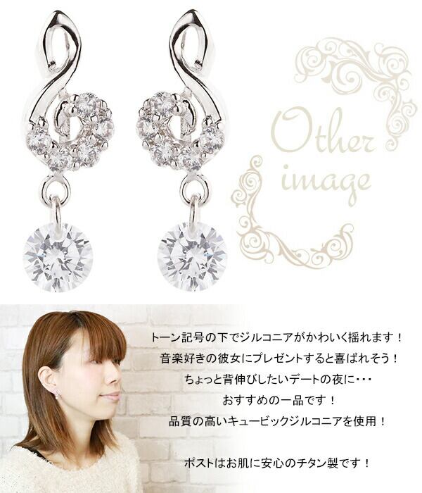 ピアス レディース ト音記号 音符 音楽 キュービックジルコニア 金属アレルギー対応 チタン製ポスト メール便 送料無料 春夏秋冬 大人気 あす楽