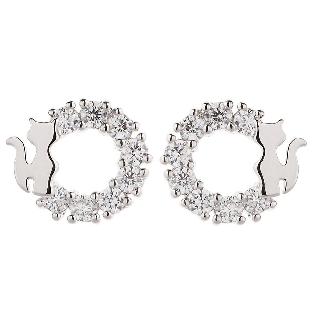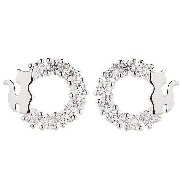 ピアス レディース リングに猫ちゃんがかわいく座る 動物 キャット キュービックジルコニア チタン製ポスト メール便 送料無料 金属アレルギー対応 春夏秋冬 大人気 あす楽