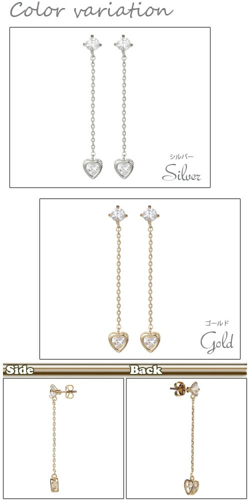 スタッドピアス レディース 金属アレルギー対応 チタンポスト ハートモチーフをキュービックジルコニアからチェーンで下げた 揺れる キュート メール便 送料無料 春夏秋冬 大人気 あす楽