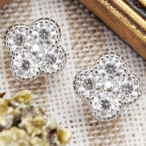 キュートな使い勝手が良いキュービックジルコニアフラワーピアス。
