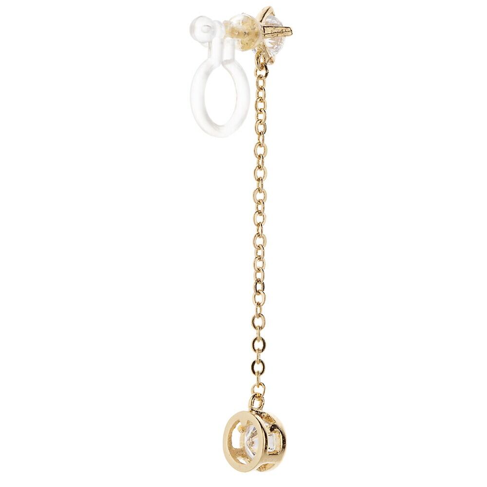 イヤリング レディース ノンホールピアス 樹脂オメガ ノンアレルギー 2粒 チェーンフリンジ ストーン 繊細 デイリー メール便 送料無料 春夏秋冬 大人気 あす楽