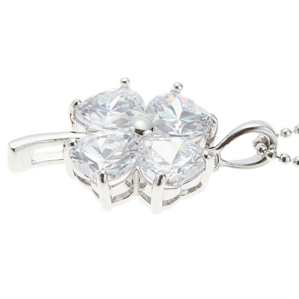 ネックレス レディース キュービックジルコニア四葉のクローバー シルバー クリア ハート 大振り シンプル 上品 お守り 可愛い ペンダント レディース ギフト用 プレゼント メール便 送料無料 春夏秋冬 大人気 あす楽