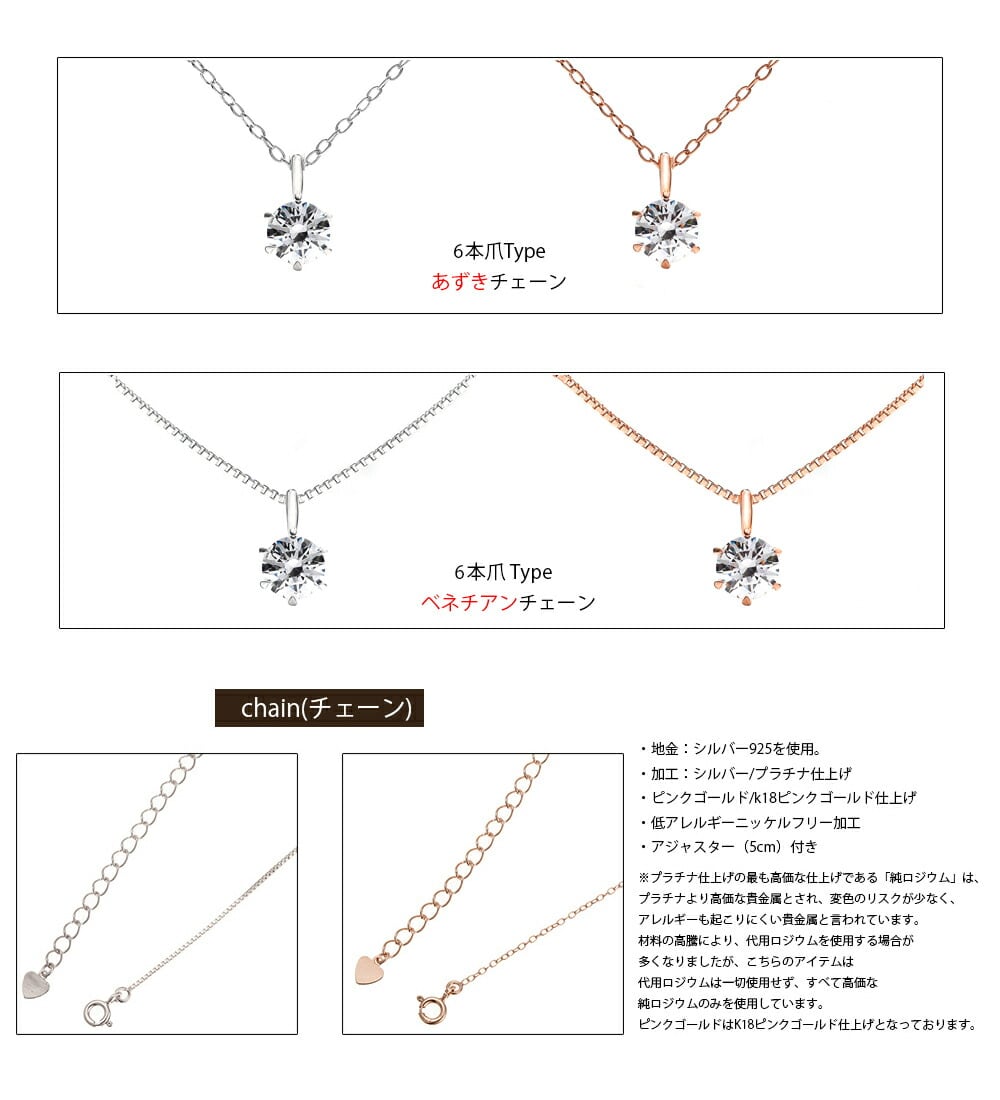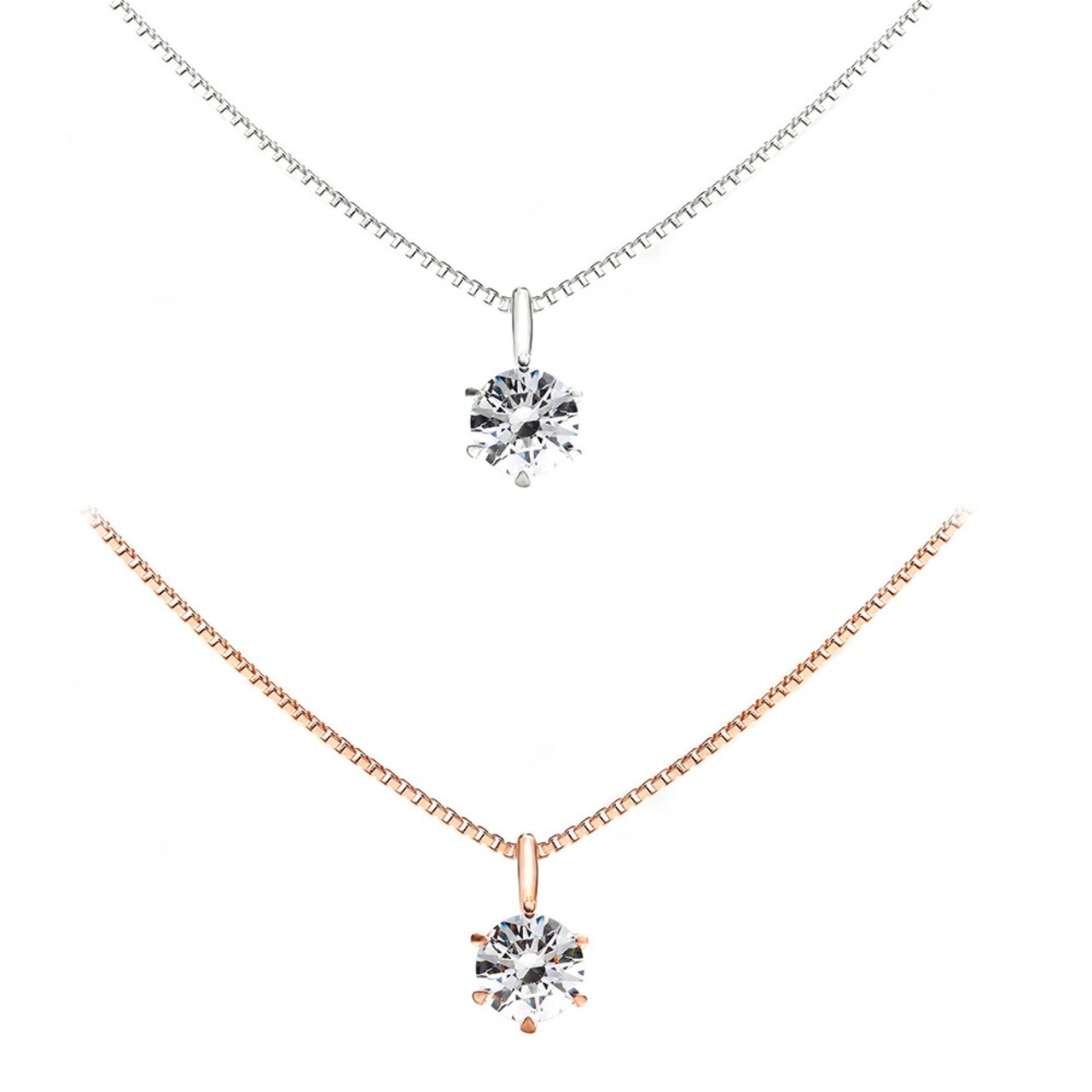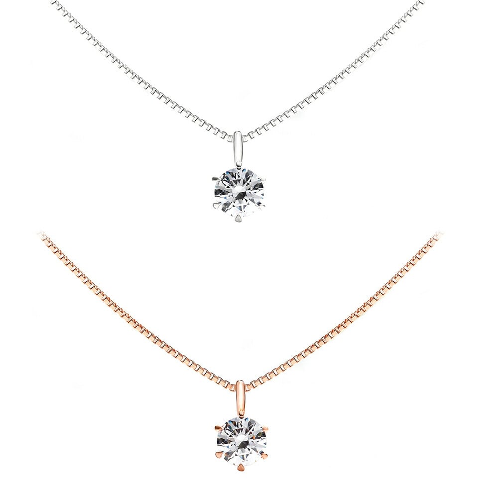 ネックレス レディース 6本爪ペンダント 6mmスーパーキュービックジルコニア あずきチェーン プラチナ仕上げ k18ピンクゴールドコーティング 上品 美しい 綺麗 煌めき 送料無料 ベネチアンチェーン プレゼント 春夏秋冬 大人気