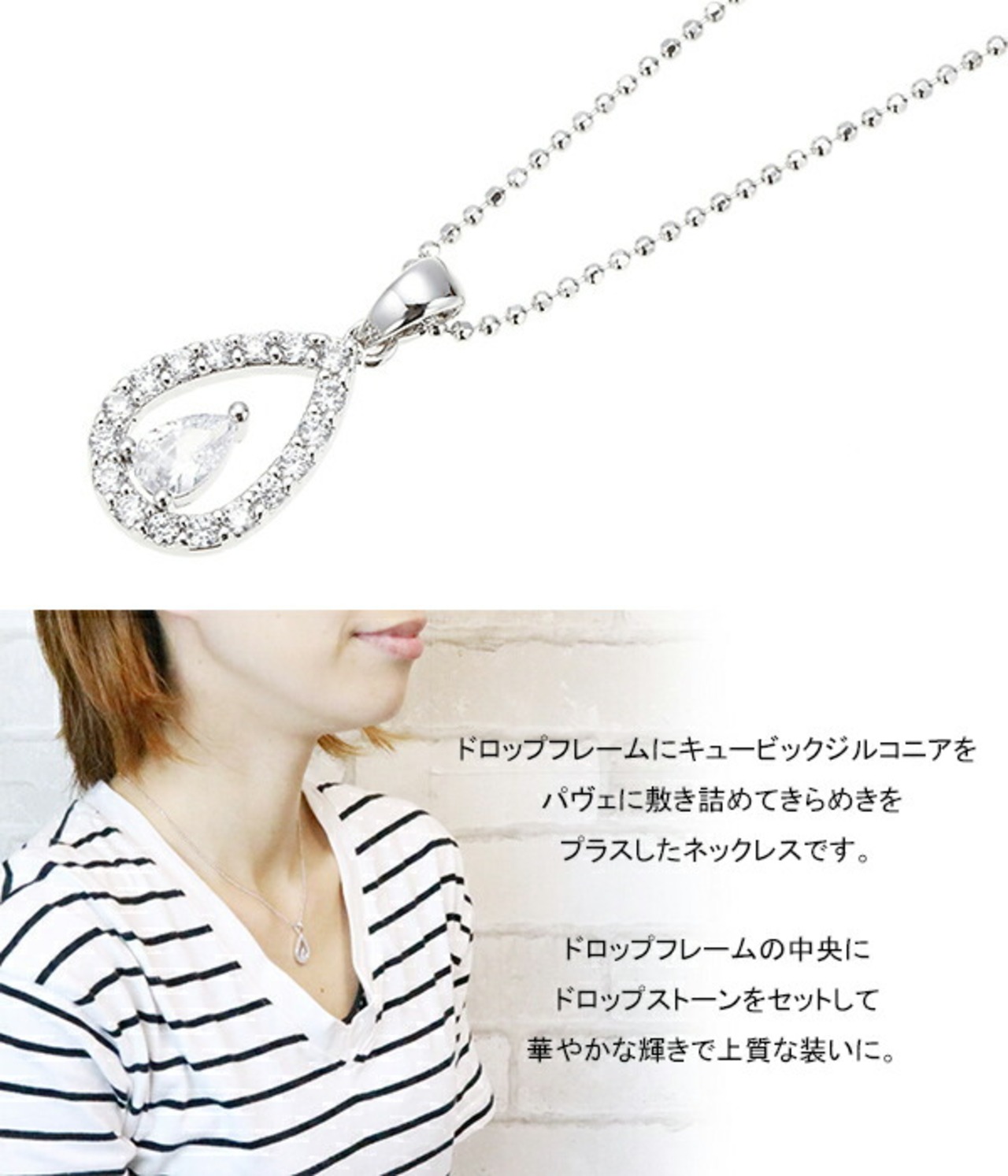 ネックレス ペンダント レディース ボールチェーン ドロップ しずくフレーム キュービックジルコニア パヴェ 華やか 上品 ラグジュアリー メール便 送料無料 春夏秋冬 大人気 あす楽