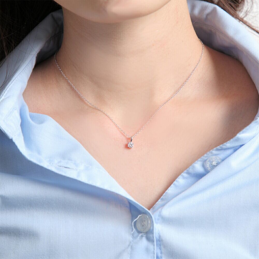 キュービックジルコニアが煌く、シンプルな4本爪レディースネックレスです。