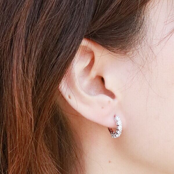 繊細に煌めくラインストーンを立体的にあしらったフープピアスです。