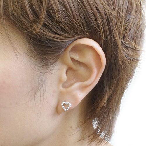 チタンポスト スタッドピアス キュービックジルコニア オープンハートに煌めきストーン エレガント 定番 金属アレルギー対応 レディース メール便 送料無料 春夏秋冬 大人気 あす楽