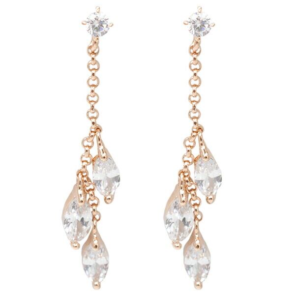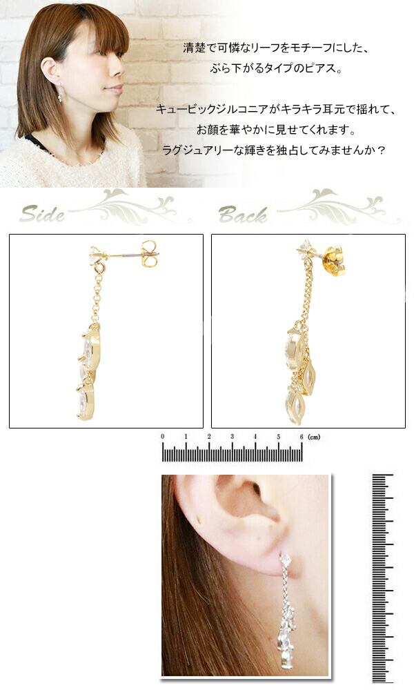 レディース スタッドピアス キュービックジルコニア リーフ形 葉 3粒 揺れる フリンジ チタン製ポスト 金属アレルギー対応 エレガント デイリー プレゼント メール便 送料無料 春夏秋冬 大人気 あす楽