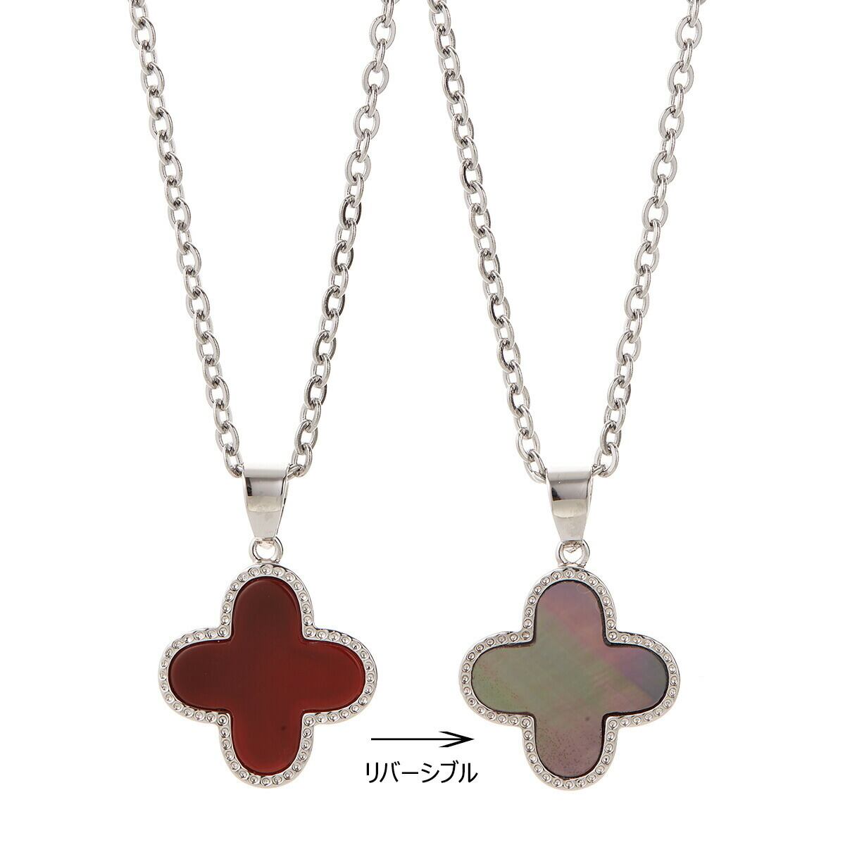 ロングネックレス レディース メンズ 四葉 クローバー リバーシブル シェル 白蝶貝 黒蝶貝 カーネリアン オニキス サージカルステンレス製チェーン 50cm 花 フラワー 可愛い お洒落 キレイ 普段使い デイリー 誕生日 記念日 お祝い ご褒美 プレゼント ギフト