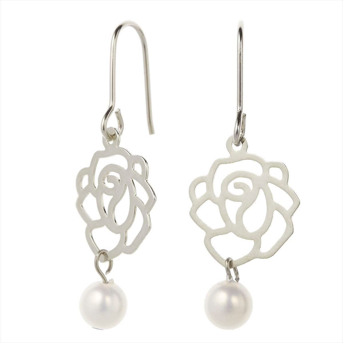 ピアス つけっぱなし レディース チタン製 サージカルステンレス製フック フェイクパール 真珠 揺れる 金属アレルギー 安心 対応 フリンジ 1粒 薔薇 メール便 送料無料 春夏秋冬 大人気
