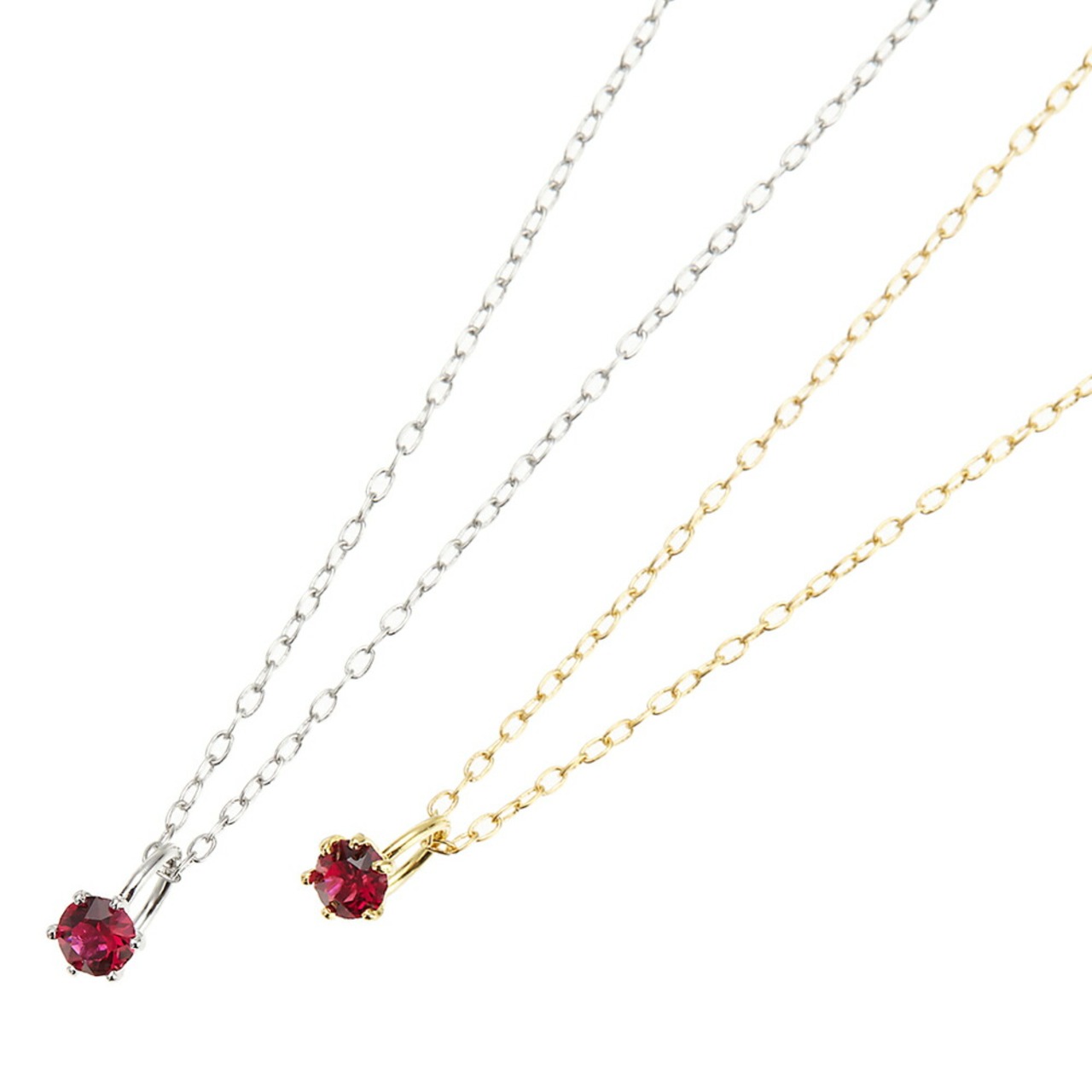 チェーンを2カラーから選べるミニ指輪モチーフの誕生石ネックレスです。