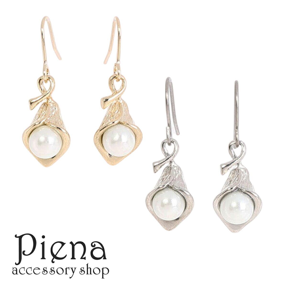 ピアス つけっぱなし レディース 春夏秋冬 チタン製 サージカルステンレス製フック 巻貝 フェイクパール 葉っぱ 花 金属アレルギー対応 安心 メール便送料無料