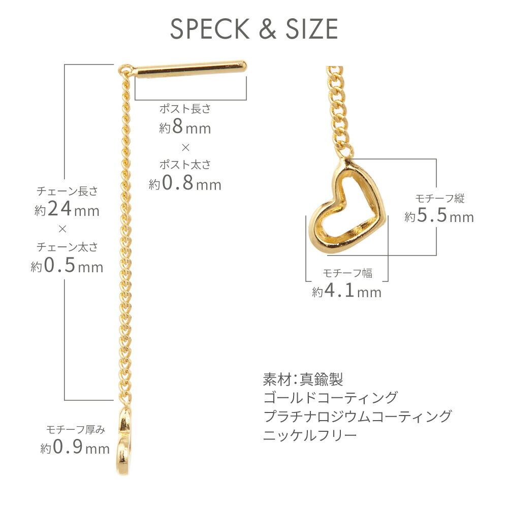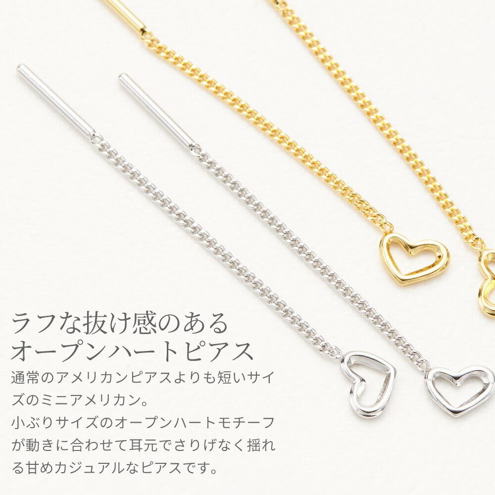 アメリカンピアス レディース かわいい 日本製 ニッケルフリー フリンジ オープンハート 短め チェーン シルバー ゴールド メール便 送料無料 春夏秋冬 大人気