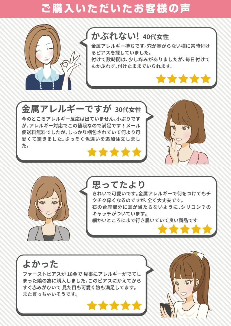 金属アレルギー対応、ファーストピアス、セカンドピアスにも、お勧めです。