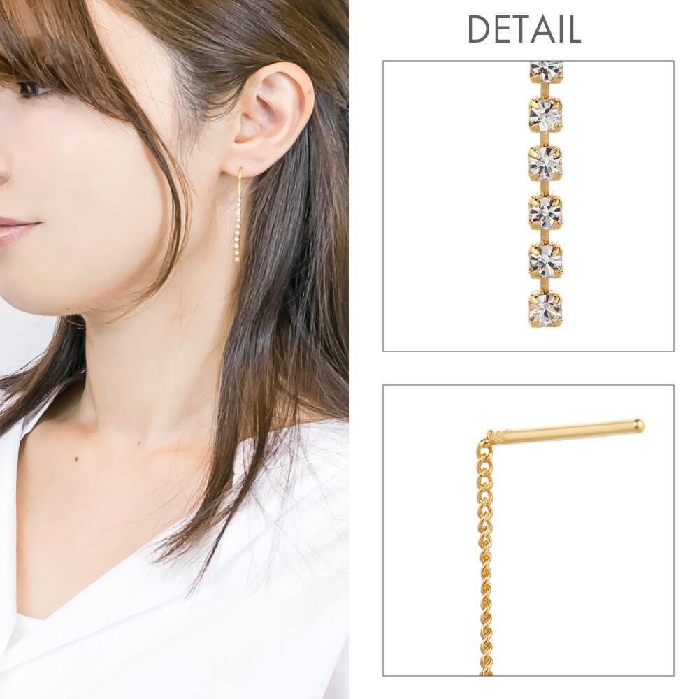 アメリカンピアス レディース ラインストーン10石の光のライン ジプシー チェーン フリンジ 小さい 小さめ 短い ショート 国産 日本製 シルバー ゴールド メール便 送料無料 春夏秋冬 大人気