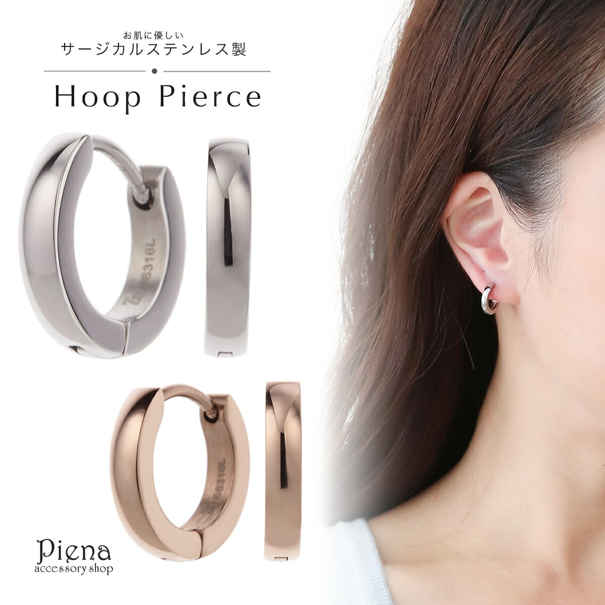 お肌に優しいサージカルステンレス製なので、