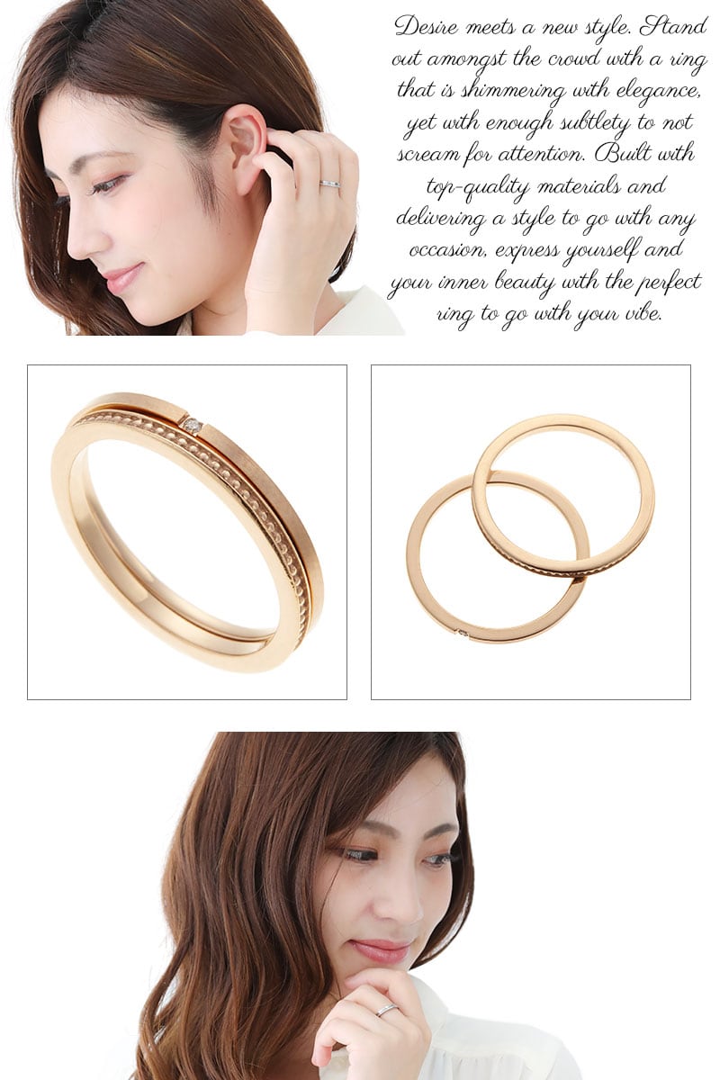 リング レディース サージカルステンレス製 重ね付け セット ミル打ち ミルグレイン 平打ち 一石 一粒 9号 低金属アレルギー 金属アレルギー対応 華奢 細め 極細 上品 高級感 シンプル カジュアル オシャレ ファッションリング 指輪 プレゼント ギフト ラッピング 送料無料