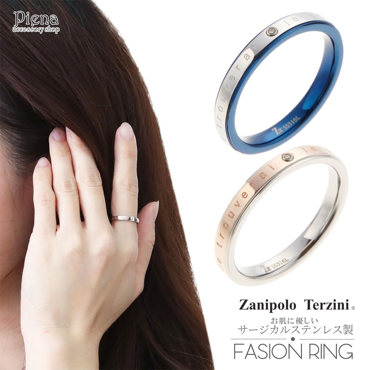リング レディース メンズ サージカルステンレス製 ダイヤモンド Zanipolo Terzini ザニポロタルツィーニ お肌に優しい 金属アレルギー対応 ペアリングにも ツートンカラー 指輪 トラベルジュエリー お揃い 恋人 友達 親友 夫婦 記念日 誕生日 プレゼント ギフト 送料無料