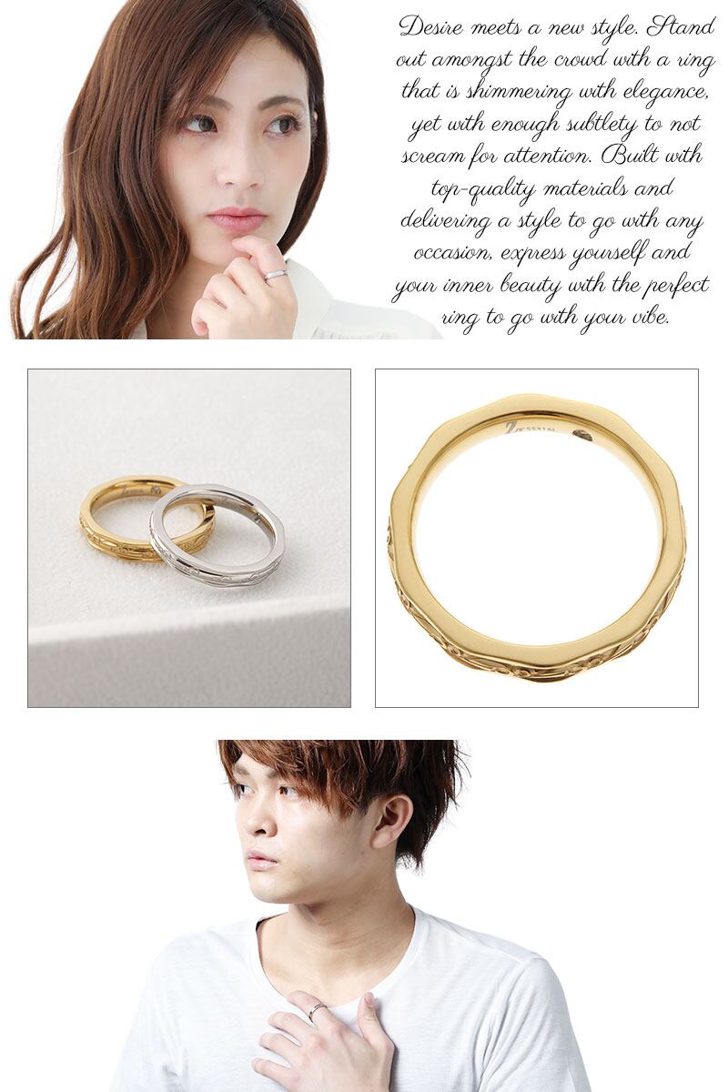 リング レディース メンズ サージカルステンレス製 ペアリング カップル お揃い 指輪 お肌に優しい 安全 安心 ダイヤモンド エレガント デザイン おしゃれ 美しい 華奢 ツタ模様 上品 大人 シンプル 誕生日 記念日 プレゼント バースデー ギフト 贈り物 送料無料