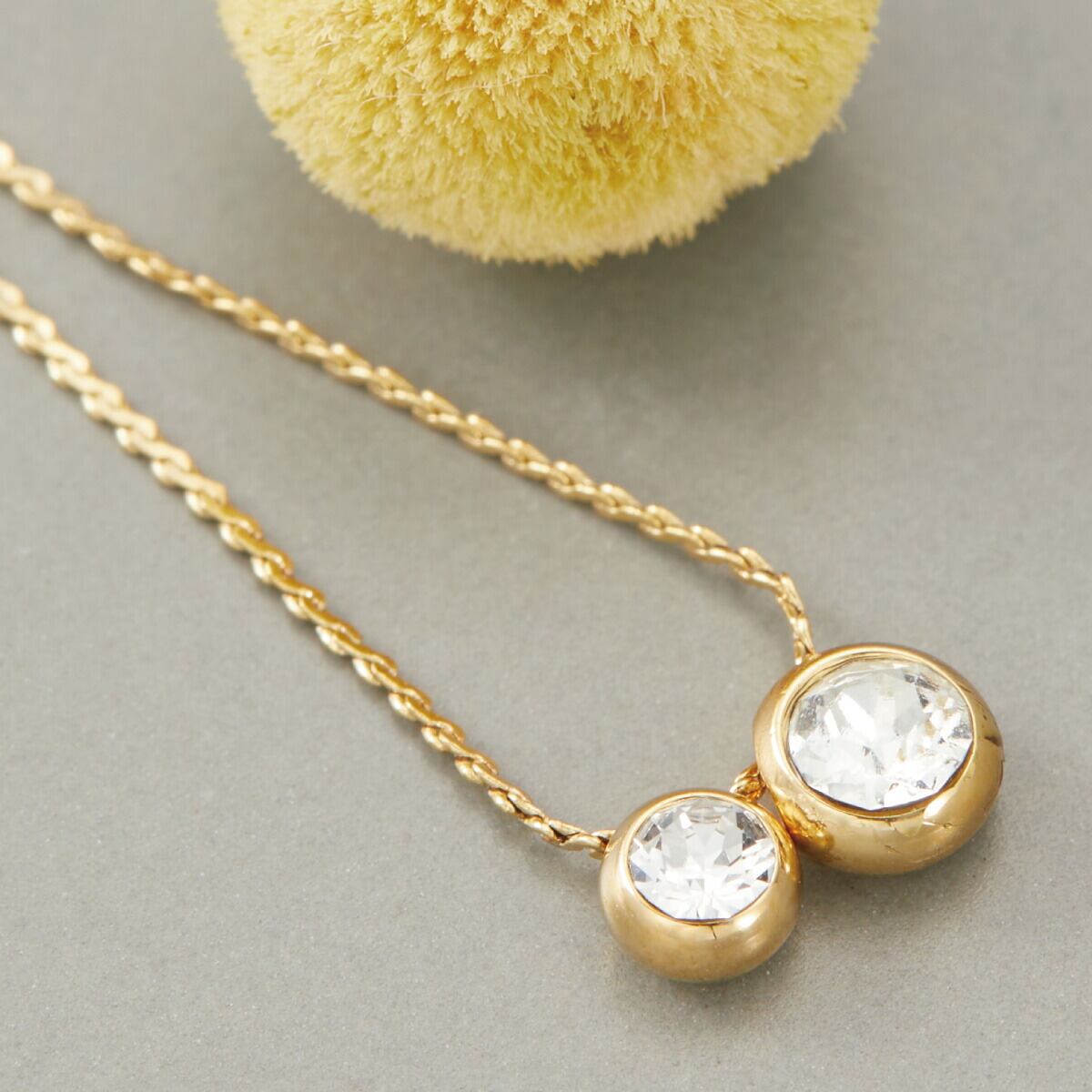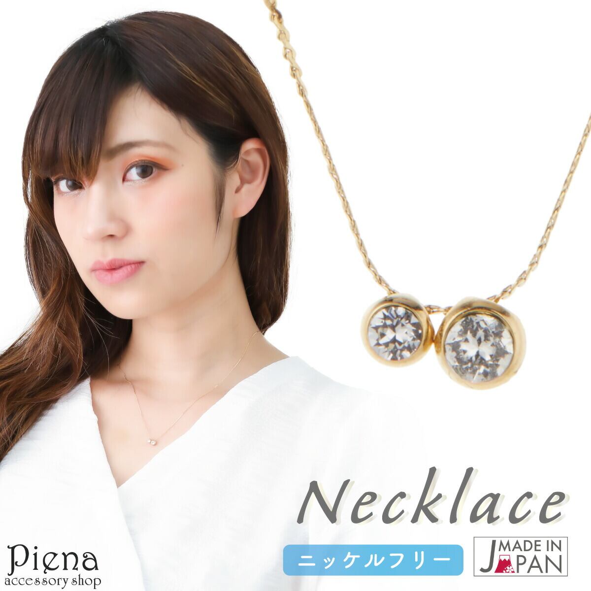 ネックレス ペンダント レディース 日本製 ニッケルフリー 2粒石 ゴールド ラウンド キラキラ 小さい ミニ 華奢 シンプル お肌に優しい 金属アレルギー対応 上品 かわいい 大人可愛い 誕生日 記念日 プレゼント ギフト メール便送料無料