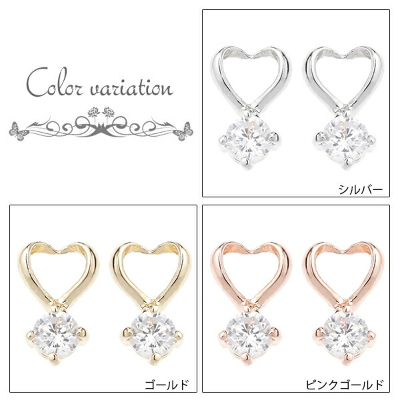 丸みのある手書きのようなオープンハートにキュービックジルコニアを1石セット。