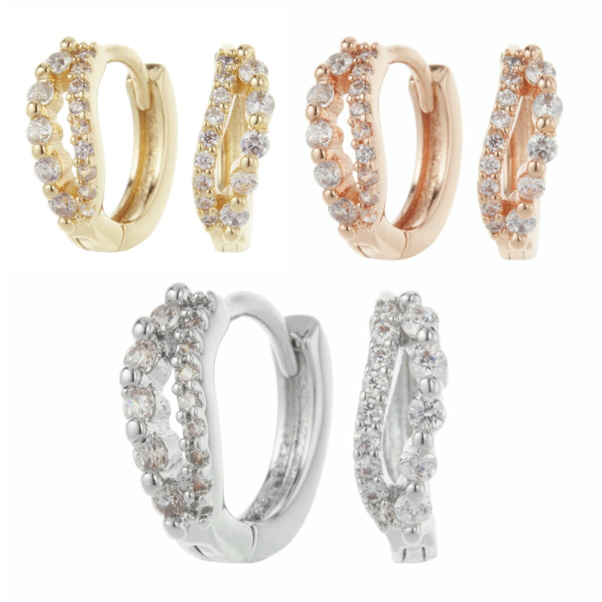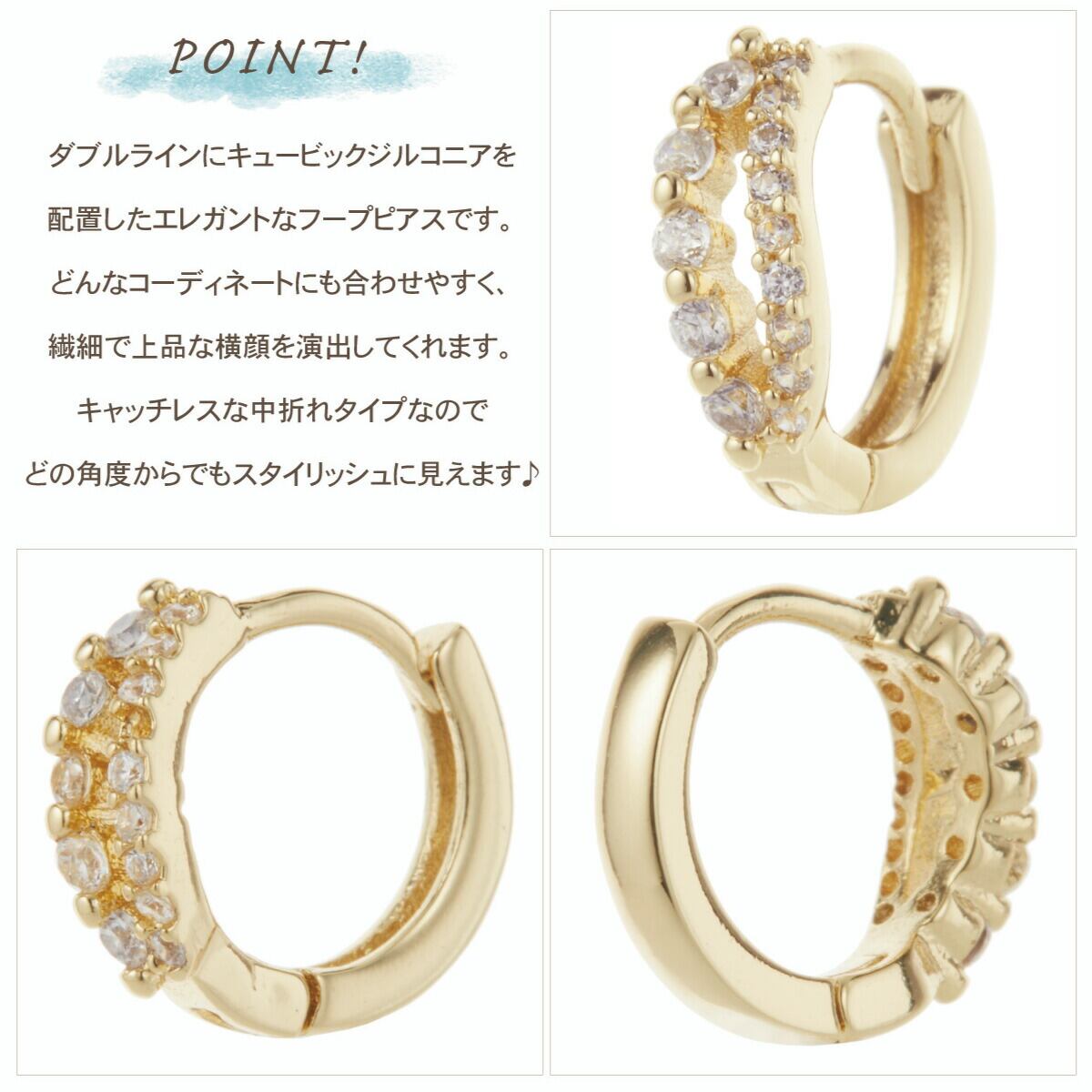 フープピアス レディース ニッケルフリー キュービックジルコニア ダブルライン パヴェ キラキラ シンプル ミニ 小さい 中折れ ワンタッチ お肌に優しい 金属アレルギー対応 上品 かわいい 大人可愛い オフィス 結婚式 誕生日 記念日 プレゼント ギフト メール便送料無料