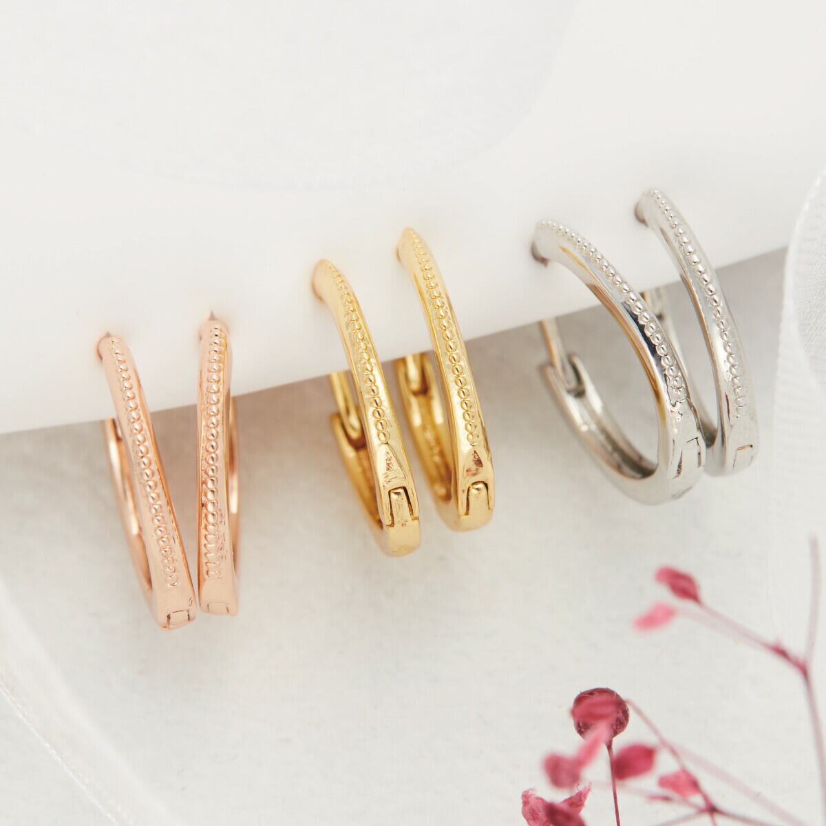 フープピアス レディース ニッケルフリー ミル打ち ミルグレイン シンプル 華奢 細い ミニ 小さい 中折れ ワンタッチ お肌に優しい 金属アレルギー対応 上品 かわいい 大人可愛い オフィス 結婚式 誕生日 記念日 プレゼント ギフト メール便送料無料