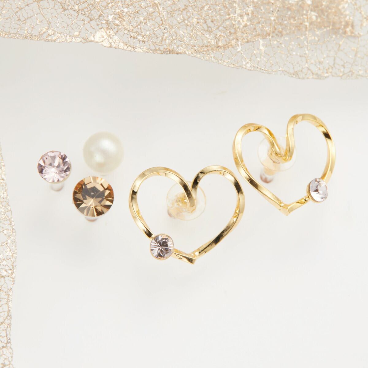 セットピアス レディース 日本製 樹脂ポスト 5点セット ハート パール 一粒ピアス 一石 小さい ミニ ラウンド キラキラ お肌に優しい 金属アレルギー対応 上品 おしゃれ かわいい パーティー 記念日 誕生日 プレゼント ギフト メール便送料無料