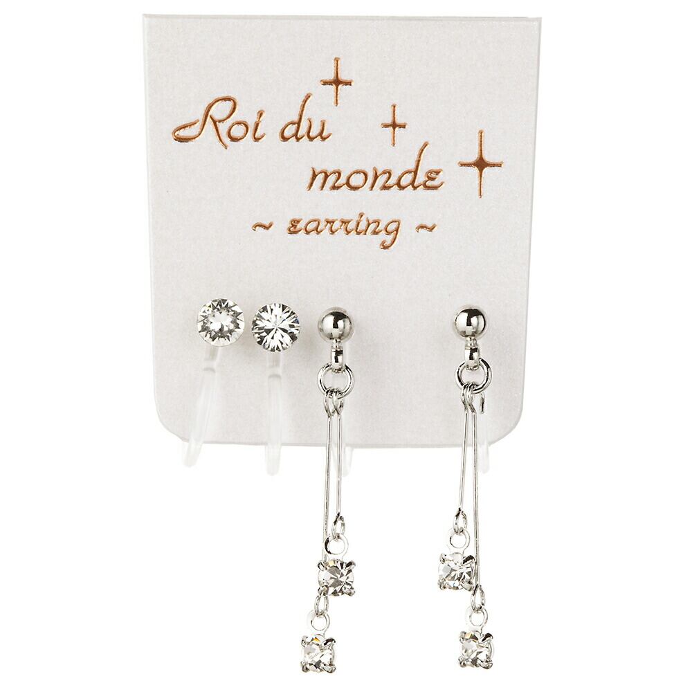 ノンホールピアス セット イヤリング ポリプロピレン製 4点 ワイヤーフリンジ ストーン シック 大人デザイン 2つのストーンをフリンジ レディース オシャレ イアリング メール便 送料無料 プレゼント 春夏秋冬 大人気 あす楽
