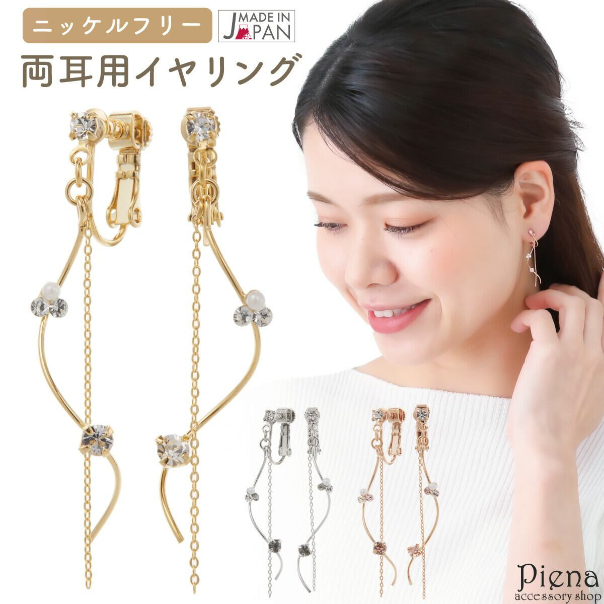 イヤリング レディース 日本製 ニッケルフリー チェーン ワイヤー キラキラ ロング 揺れる スプリングイヤリング ネジ式 お肌に優しい 金属アレルギー対応 痛くなりにくい シンプル 上品 かわいい 誕生日 記念日 プレゼント ギフト メール便送料無料
