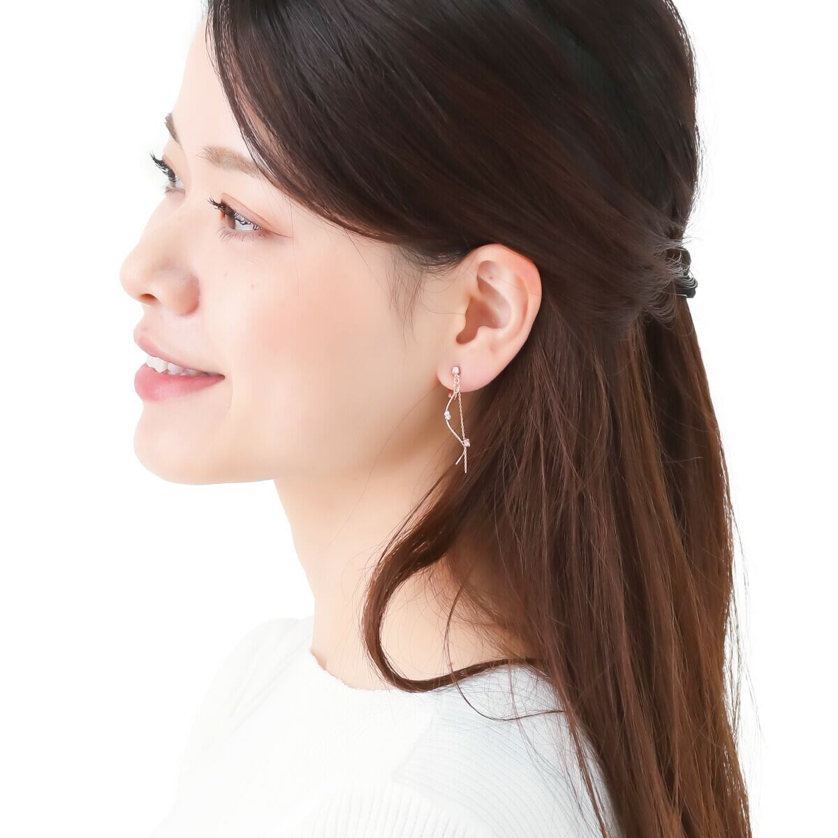 ワイヤーとチェーンが揺れ動く大人可愛いイヤリング。