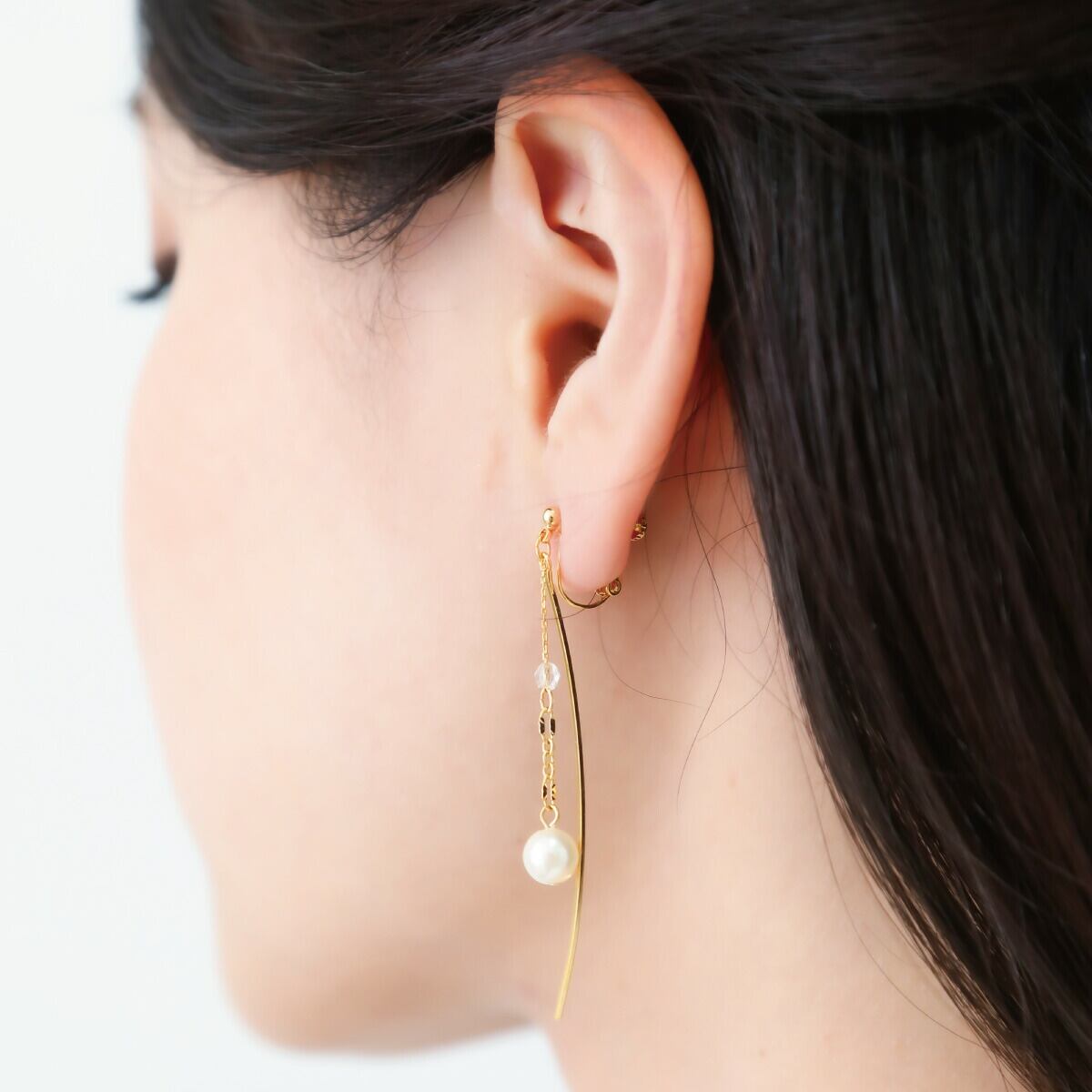 キラッと輝くチェーンが耳元を華やかに演出し、