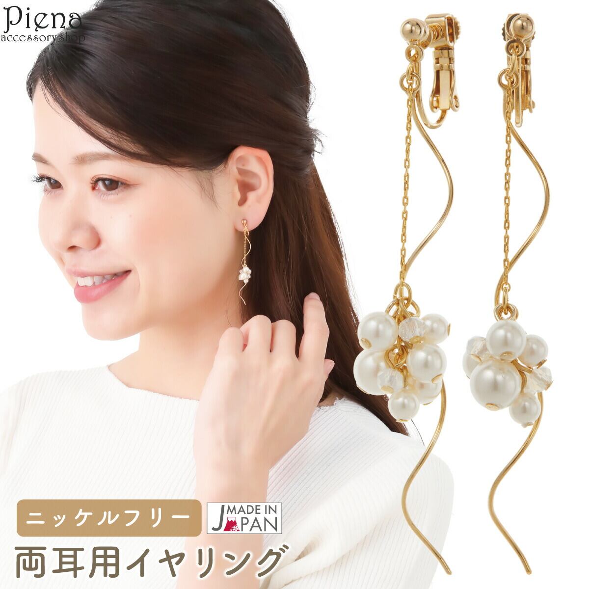 イヤリング レディース 日本製 ニッケルフリー ウェーブバー パール ドレスに合う ロング 揺れる スプリングイヤリング ネジ式 お肌に優しい 金属アレルギー対応 痛くなりにくい シンプル 上品 かわいい 誕生日 記念日 プレゼント ギフト メール便送料無料
