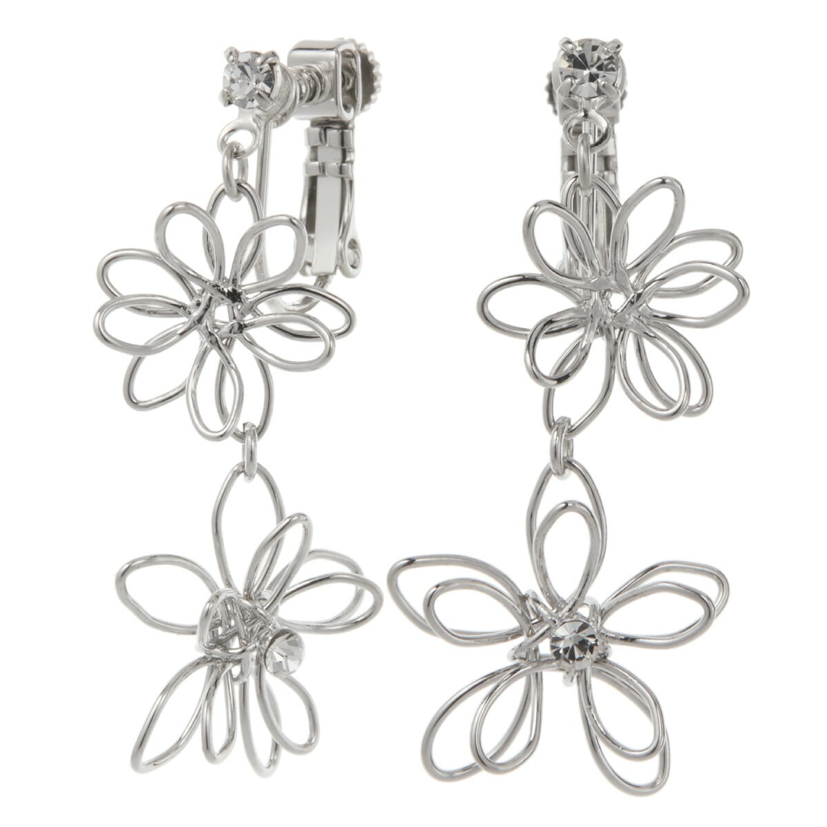 イヤリング レディース 日本製 ニッケルフリー 花 フラワー メタル ワイヤー 揺れる スプリングイヤリング ネジ式 お肌に優しい 金属アレルギー対応 痛くなりにくい シンプル 上品 かわいい 誕生日 記念日 プレゼント ギフト メール便送料無料