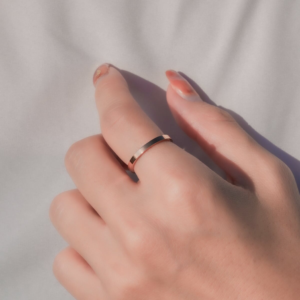 シンプルなデザインなので飽きがこない、2mmの平打リングです。