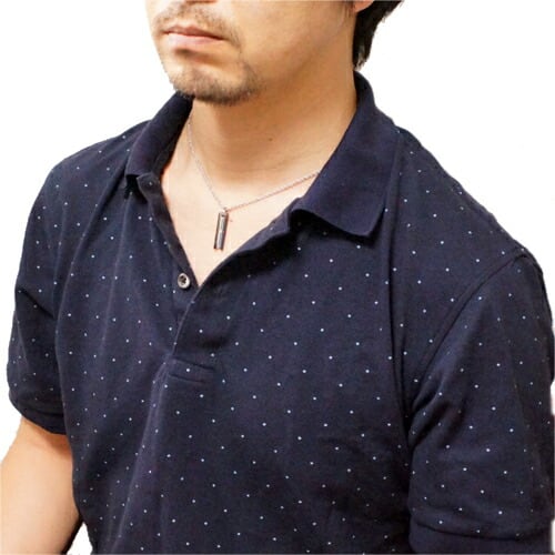 両サイドがツヤ消しのヘアライン仕上げされた、シンプルでスタイリッシュなペンダントネックレスです。
