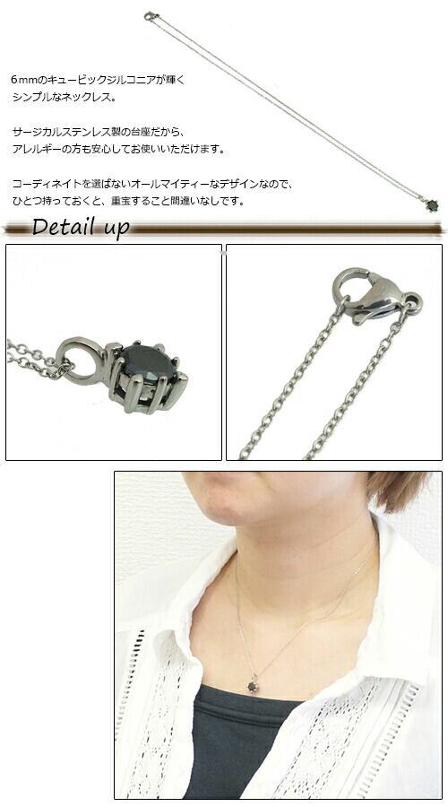6mmのキュービックジルコニアが輝くキュートなペンダント ネックレス クリア ブラック メール便送料無料 プレゼント 春夏秋冬 大人気
