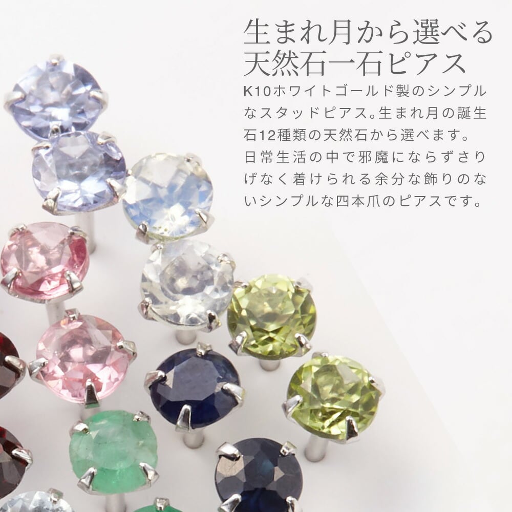 ピアス レディース K10WG製ポスト 金属アレルギー対応 K10ホワイトゴールド製 スタッドピアス 一石 天然石 誕生石 ルビー サファイア クオーツ エメラルド ガーネット キュービックジルコニア 小振り ギフト プレゼント メール便送料無料 春夏秋冬 大人気