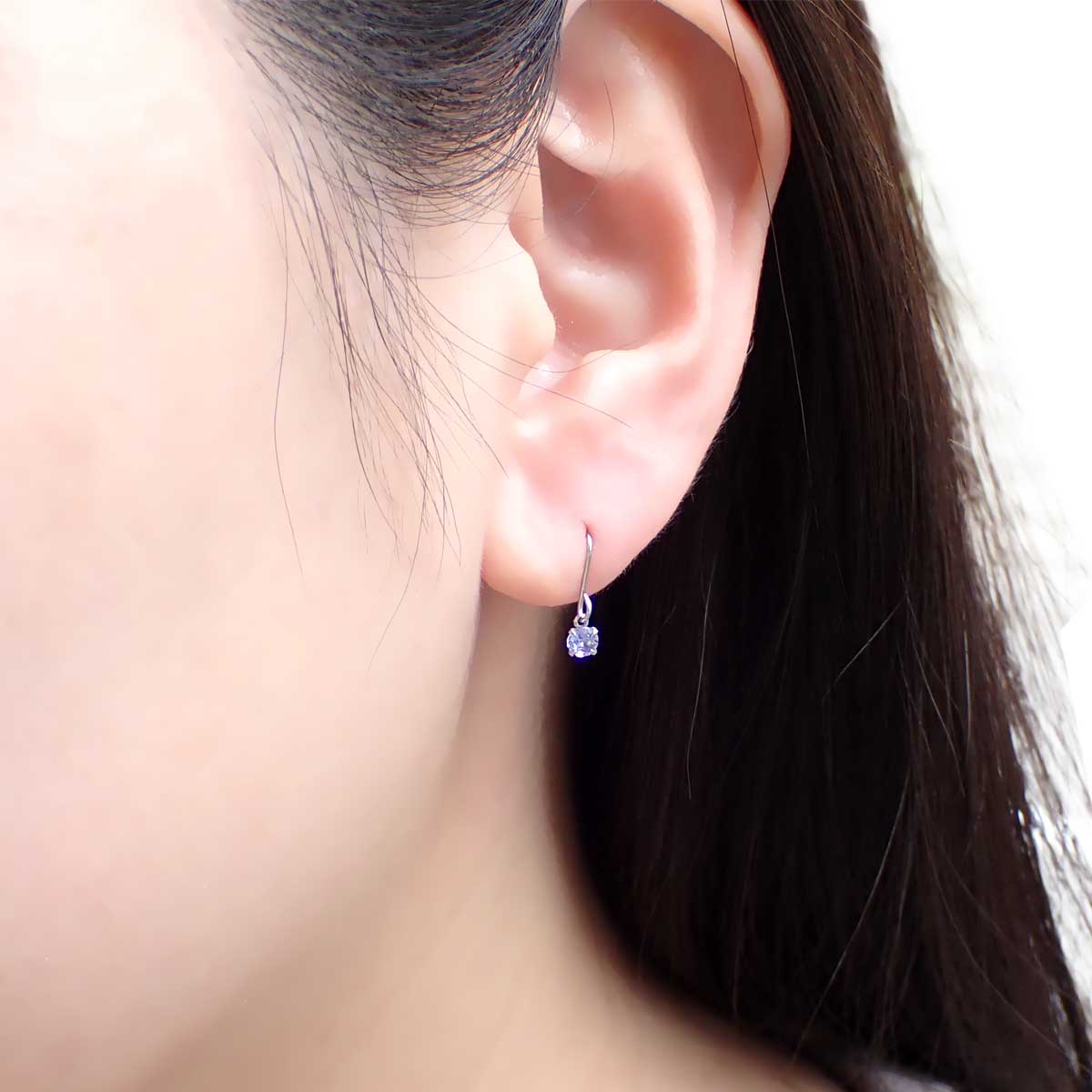 フックピアス プラチナ900ポスト 金属アレルギー対応 タンザナイト 3mm シンプル 1粒ストーン 4本爪 日本製 送料無料 春夏秋冬 大人気